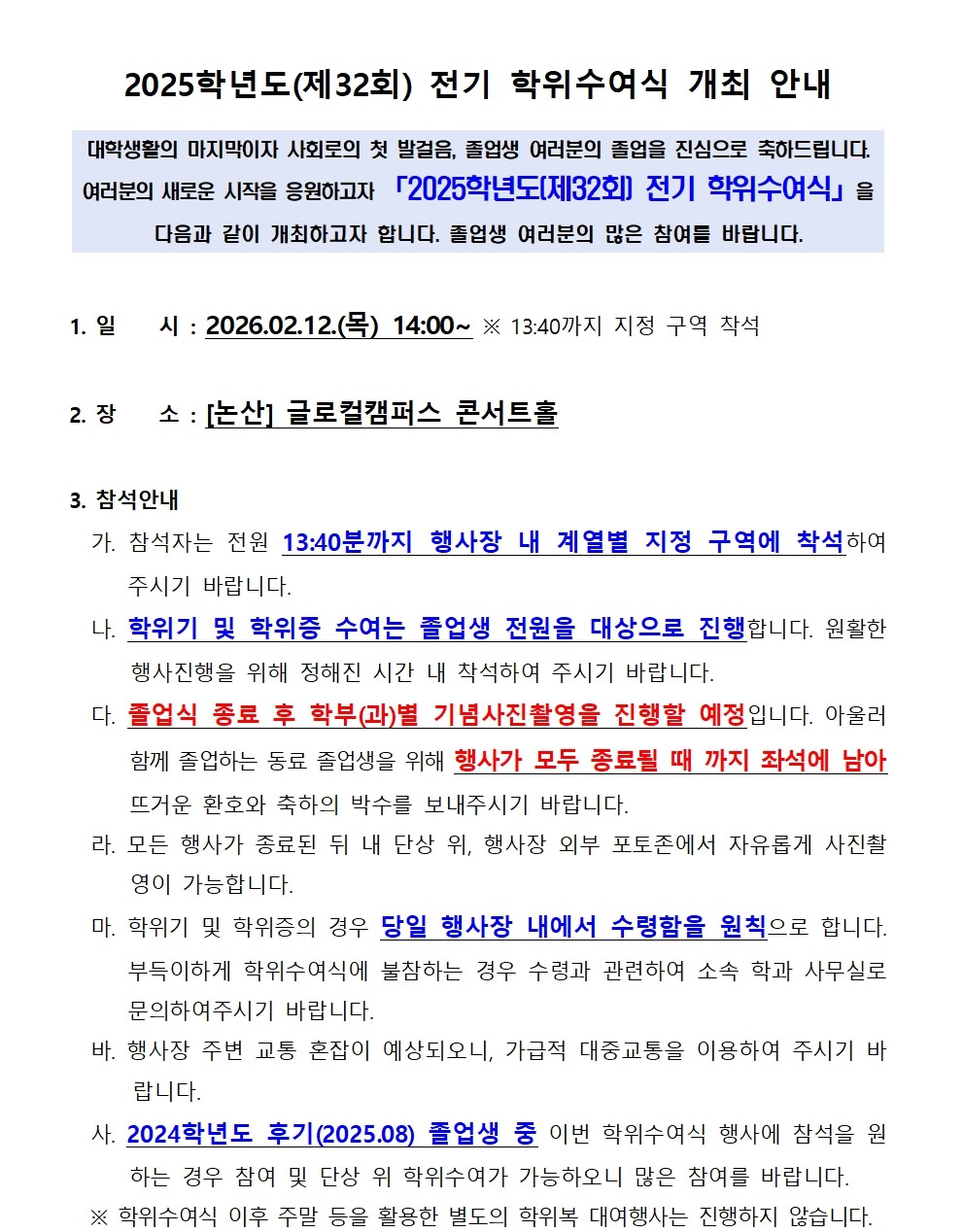 | 제목 | 2025학년도(제32회) 전기 학위수여식 개최 안내 | ||||