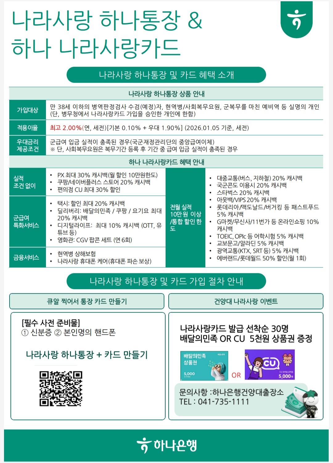 | 제목 | [하나은행] 하나 나라사랑 카드 신청 및 혜택 안내 | ||||