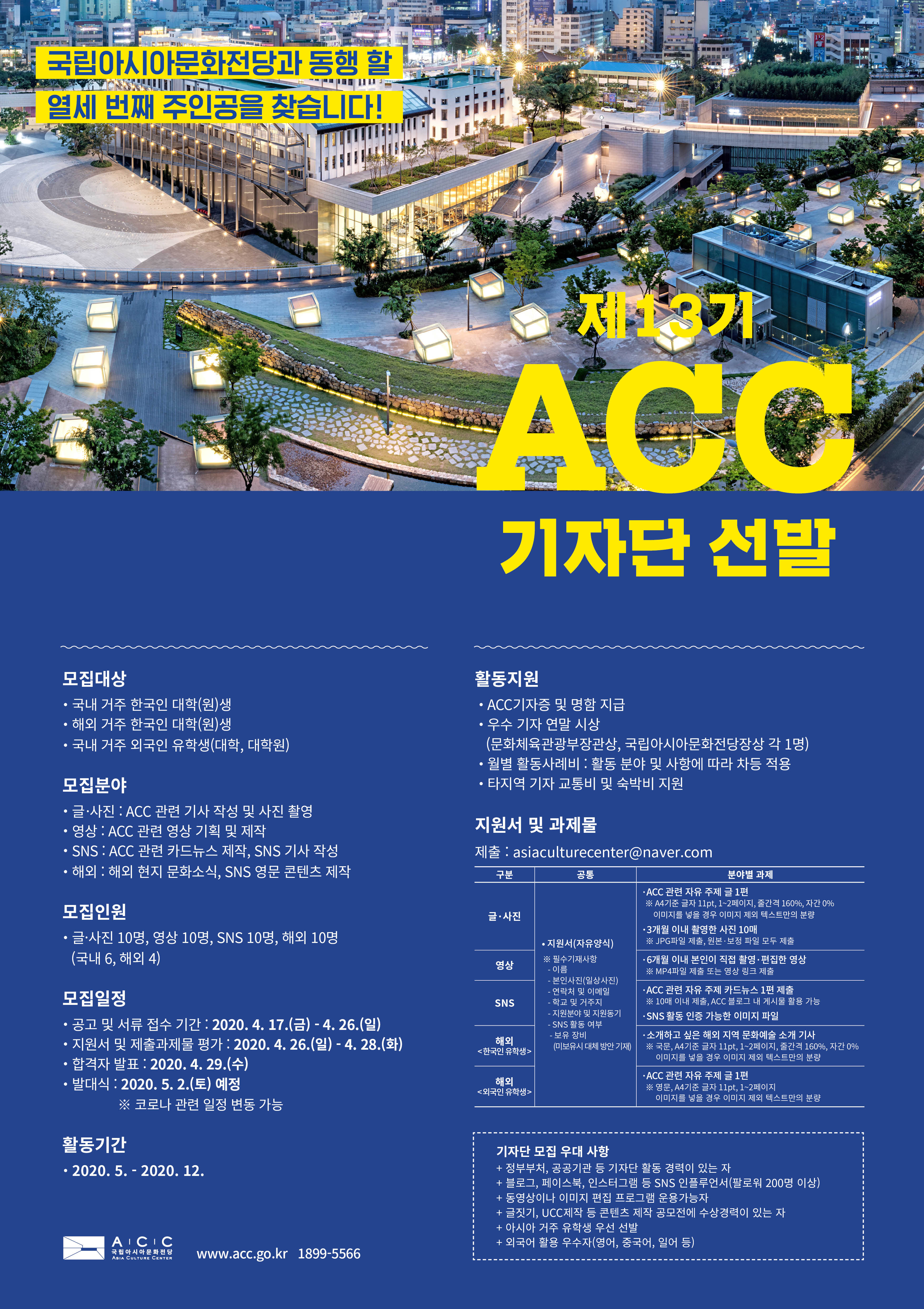 | 제목 | 제13기 ACC 대학생 기자단 모집 안내 | ||||
