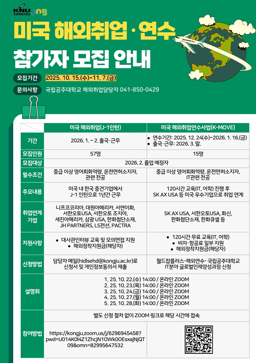 | 제목 | 2025년도 미국 해외취업(J-1인턴) 및 해외취업연수사업(K-MOVE) 참여자 모집안내 | ||||