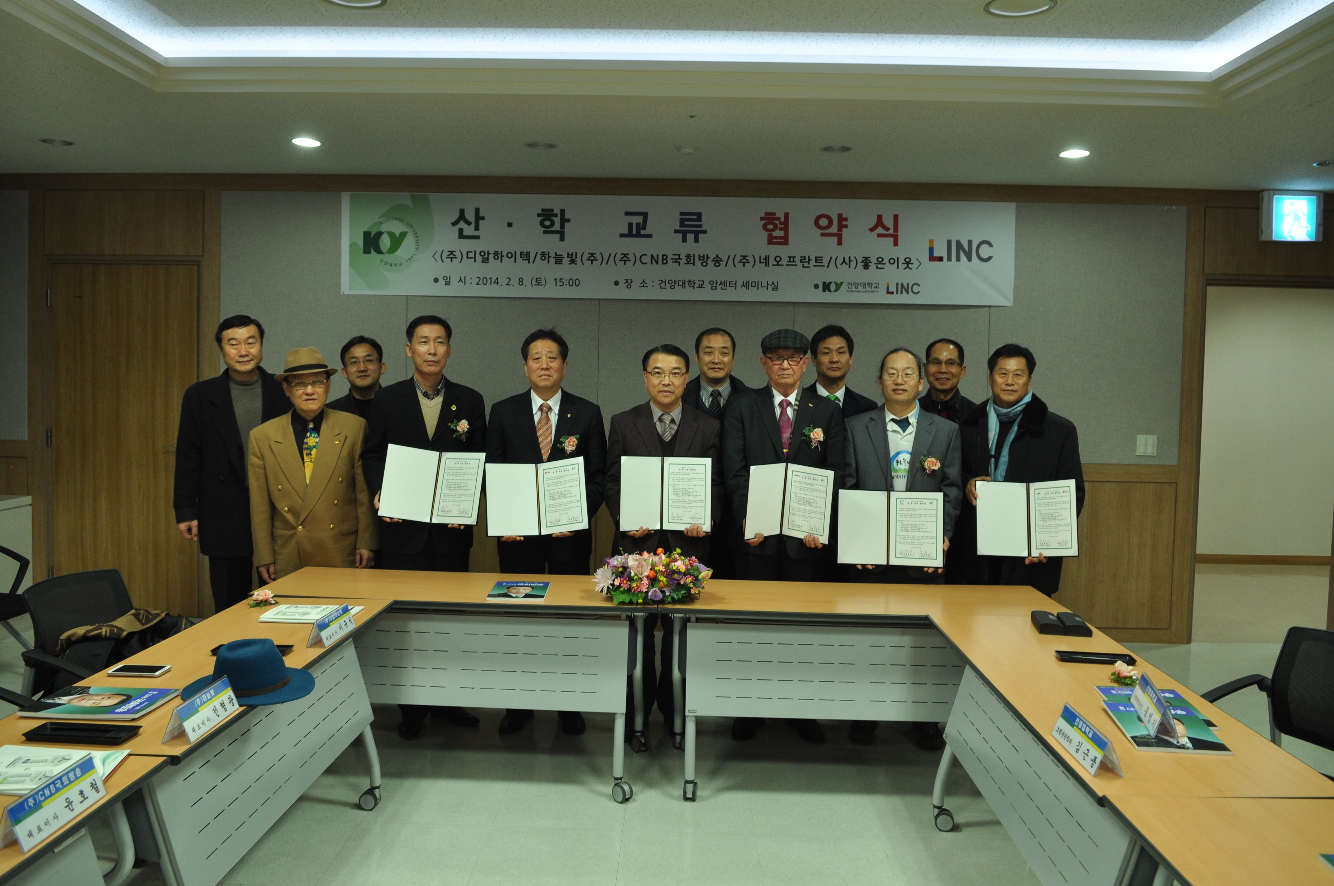 (주)하늘빛과 건양대학교 협약체결- 일자 : 2014.02.08(토) - 장소 : 건양대학교 암센터 세미나실 - 협약내용 : 1. 관력학과 학생의 현장실습지원 및 취업연계 지원 2. 산업정보 및 학술정보의 상호교환 3. 정책자문, 공동연구 등 양 기관의 발전에 필요한 사항 4. 공동 관심분야의 연구개발 및 기술 이전 5. 산학협력을 통한 양 기관의 사업 참여 협조 및 인적교류 확대 |